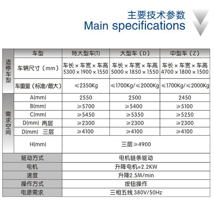 基坑三層升降 運(yùn)行原理 該設(shè)備每組上中下三個(gè)車臺(tái)板為一體,同時(shí)做升降運(yùn)動(dòng)。機(jī)械下降到最低的時(shí)候,上層車臺(tái)板正好與地面平,此時(shí)上層車位可以進(jìn)出車輛。機(jī)械上升到中層車臺(tái)板與地面平時(shí),機(jī)械停止,此時(shí)中層車位